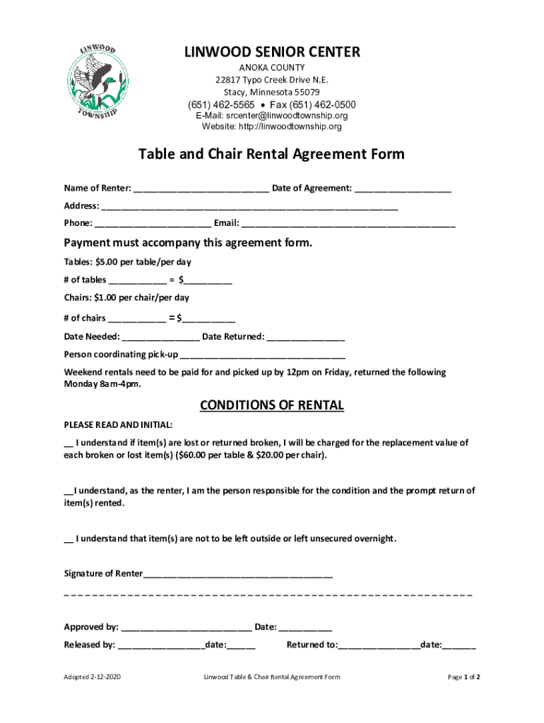 Get the free Rental FormsLinwood, MN