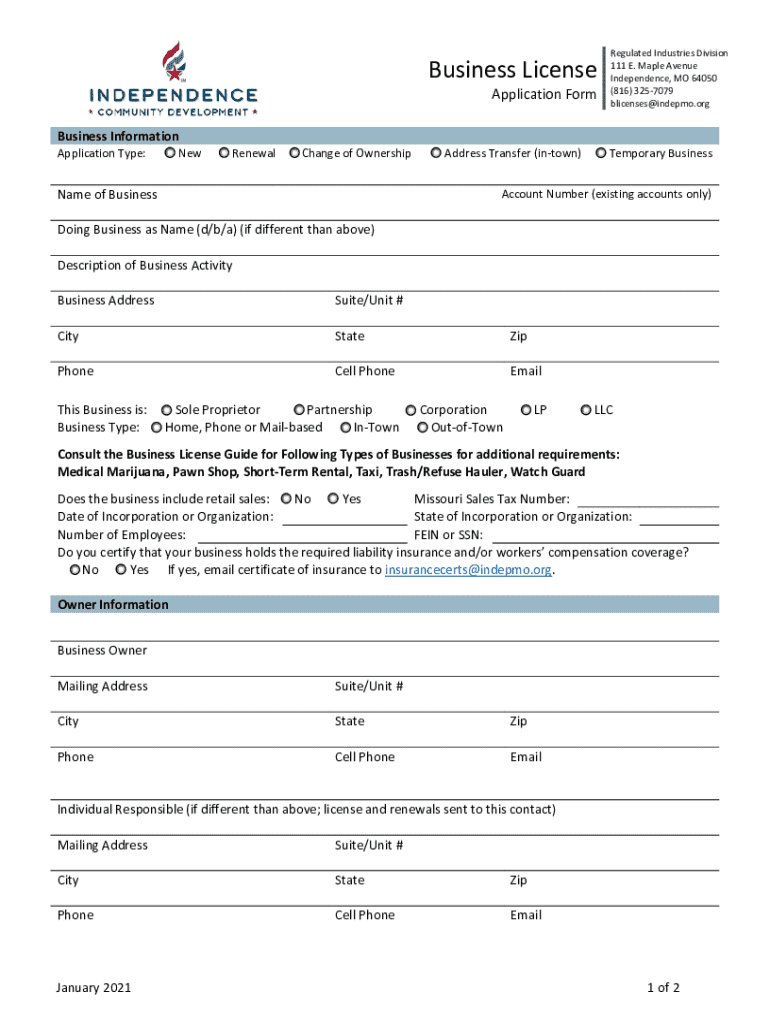 Get the free BUSINESS LICENSE APPLICATION City of Independence ...