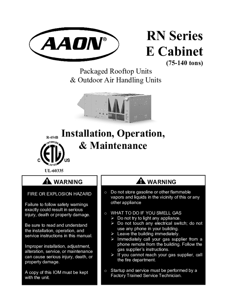 RN Series E Cabinet Packaged Rooftop Units & Outdoor Air Handling UnitsR454B(75140 tons)Installation, Operation, & MaintenanceUL60335WARNING FIRE OR EXPLOSION HAZARD Failure to follow safety warnings