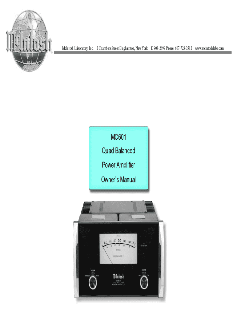 Get the free MC601 Quad Balanced Power Amplifier Owner's Manual