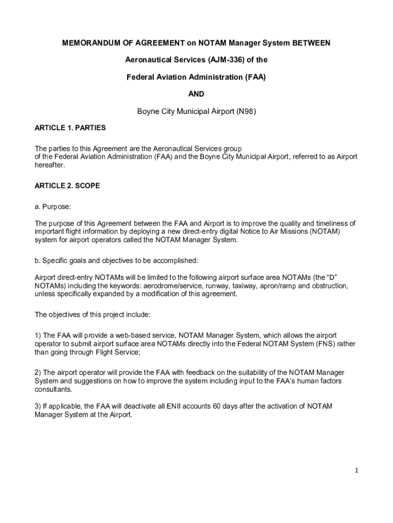 Get the free MEMORANDUM OF AGREEMENT on NOTAM Manager System BETWEEN