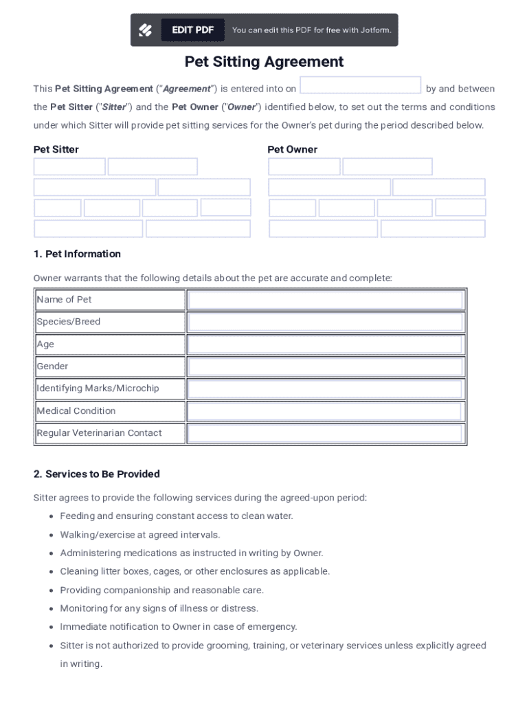 Get the free Pet Sitting Agreement Template (PDF). Prepare an agreement with your client for your...