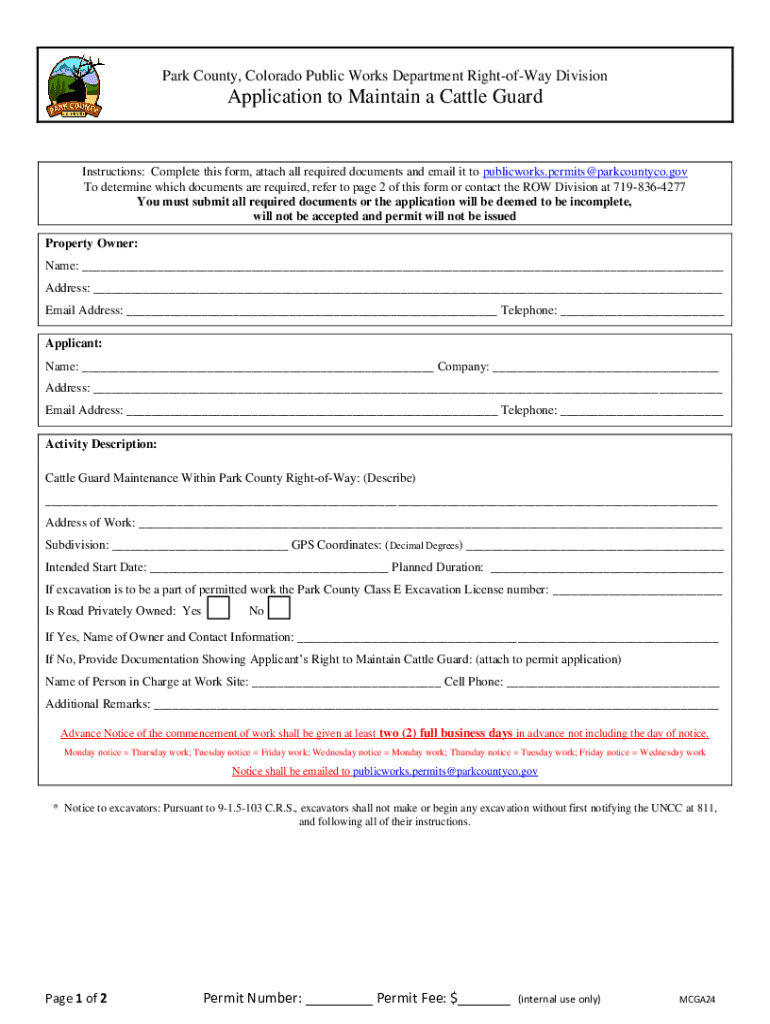 Get the free Application to Maintain a Cattle Guard