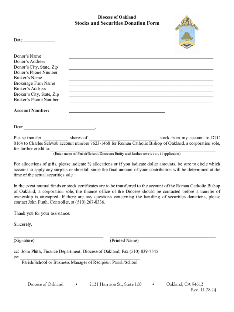 Get the free Diocese of Oakland - Stocks and Securities Donation Form
