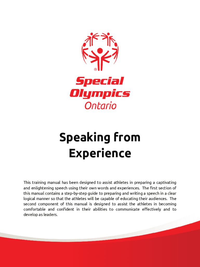 Speaking from Experience This training manual has been designed to assist athletes in preparing a captivating and enlightening speech using their own words and experiences. The first section of this