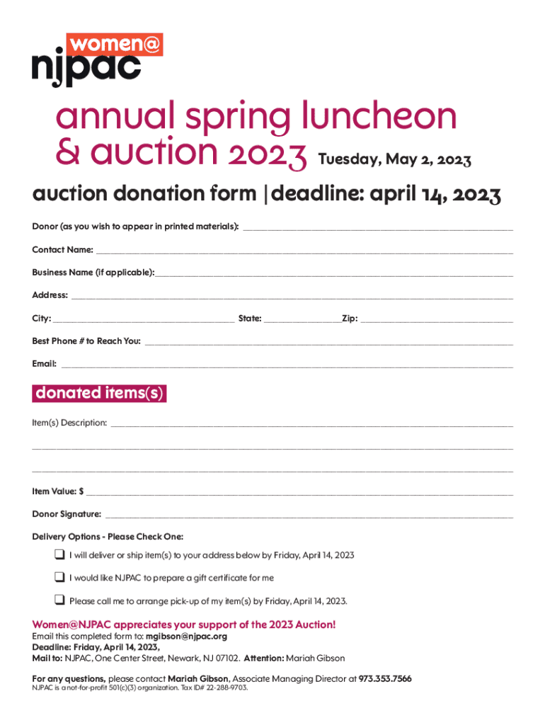 The Annual Spring Luncheon form is an essential tool designed to streamline the registration process for attendees. Its main purpose is to gather necessary information to facilitate smooth event management, including attendee registrations, seating arrangements, and fundraising opportunities.