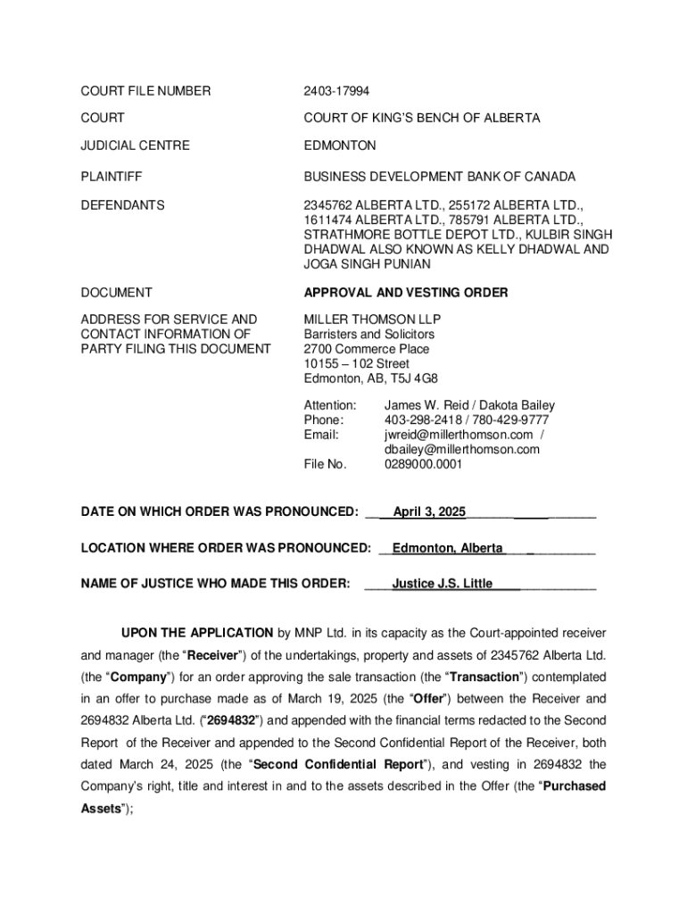 Get the free COURT FILE NUMBER 2403-17994 COURT COURT OF KING'S ...