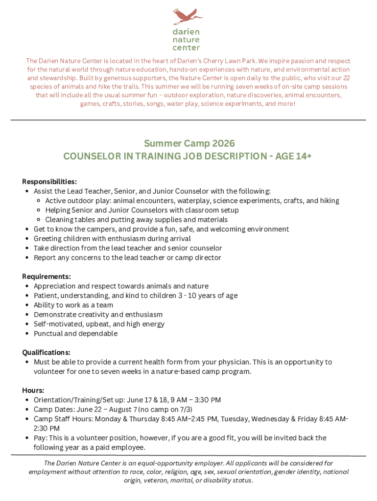 Get the free Discover Nature-Based Learning at the Darien Nature Center
