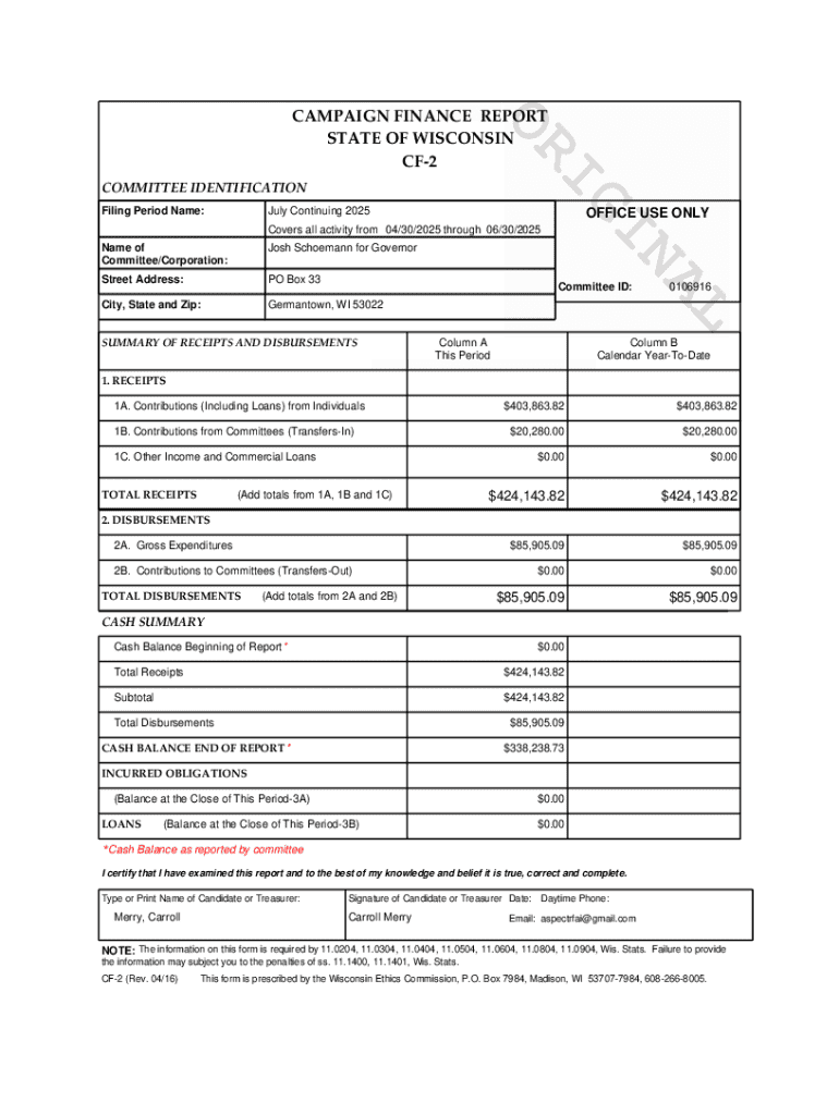 The Josh Schoemann for Governor form serves as an essential tool in building a grassroots movement throughout Wisconsin. It facilitates diverse forms of support that enable citizens to engage with the campaign actively. Whether you are looking to volunteer, become a member, or commit to a donation, the form plays a vital role in fostering community involvement and amplifying the campaign's message.