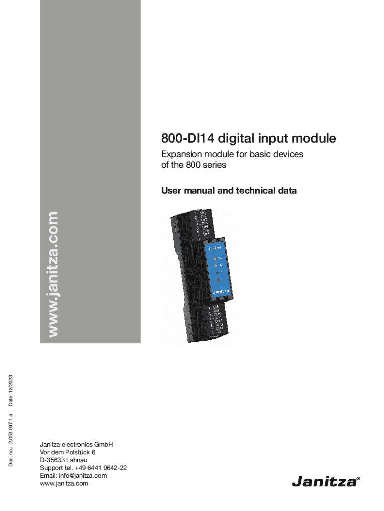 Get the free Janitza 800-DI14 Digital Input Module Installation Guide