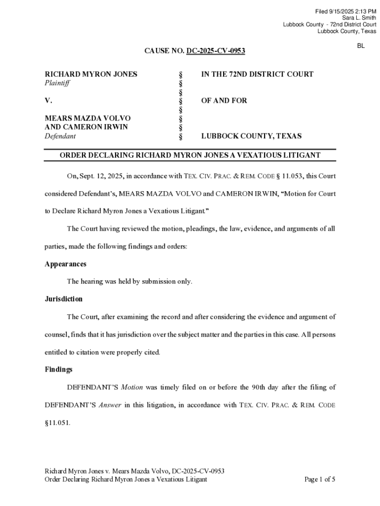 Get the free Vexatious Order.docx