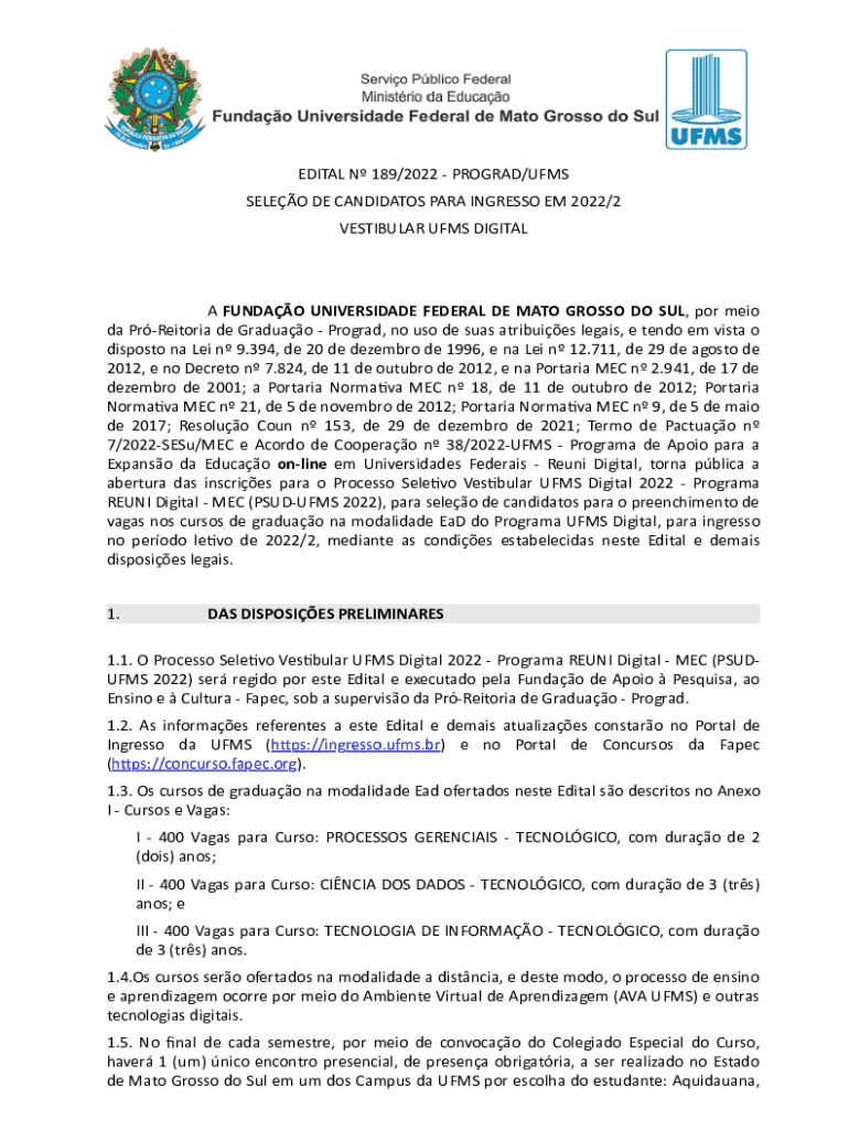 Obtenha o gratuito VESTIBULAR UFMS DIGITAL