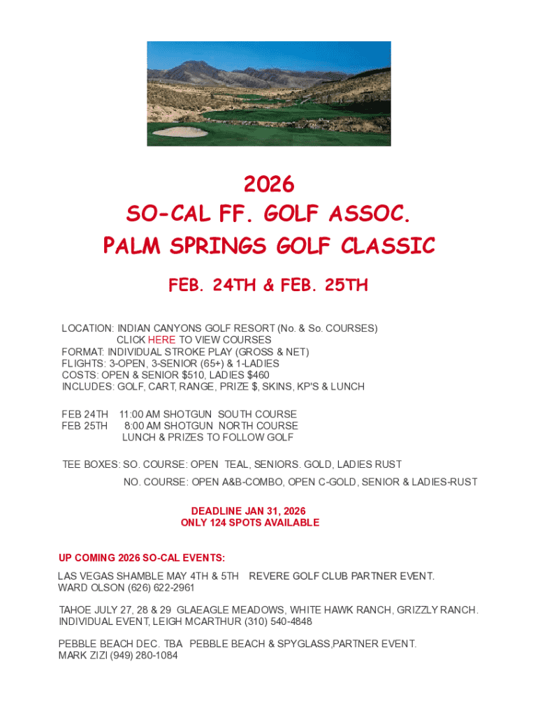 Reservations play a crucial role in maximizing your experience, allowing for proper planning and access to desired tee times. The Indian Canyons Golf Resort form simplifies this process, ensuring that players can quickly and efficiently navigate their booking needs. This form not only streamlines the reservation process but also enhances the overall customer experience by minimizing wait times.