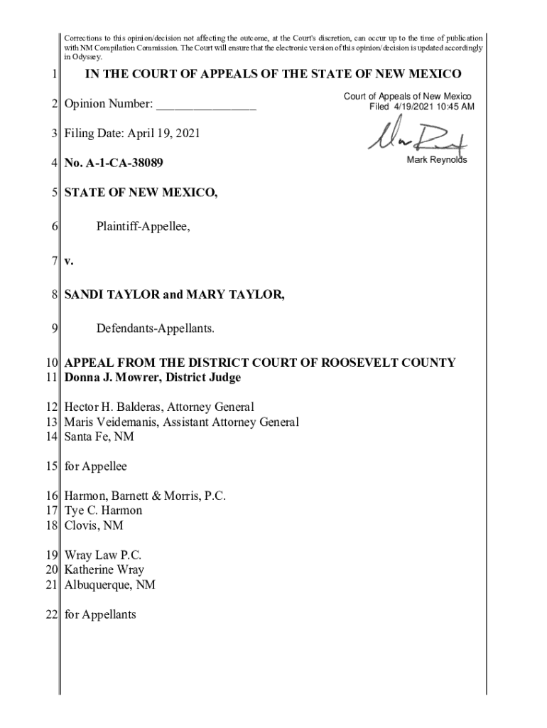Get the free A-1-CA-38089 4-19-21 FILED FO, State v. Taylor, ZaMY - coa nmcourts