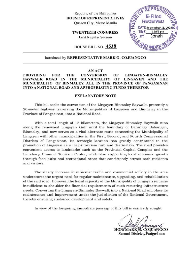 Republic of the Philippines HOUSE OF REPRESENTATIVES Quezon City, Metro Manila TWENTIETH CONGRESS First Regular SessionSeptember 11, 2025 12:52 pm4538 HOUSE BILL NO. ___ Introduced by REPRESENTATIVE