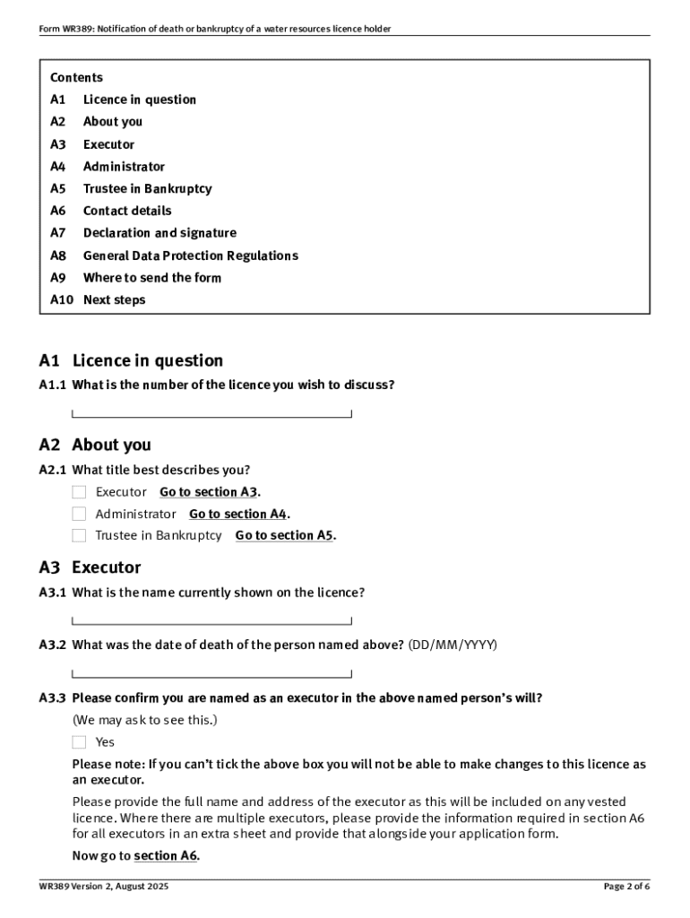 Get the free Form WR389: Notification of death or bankruptcy of a water ...