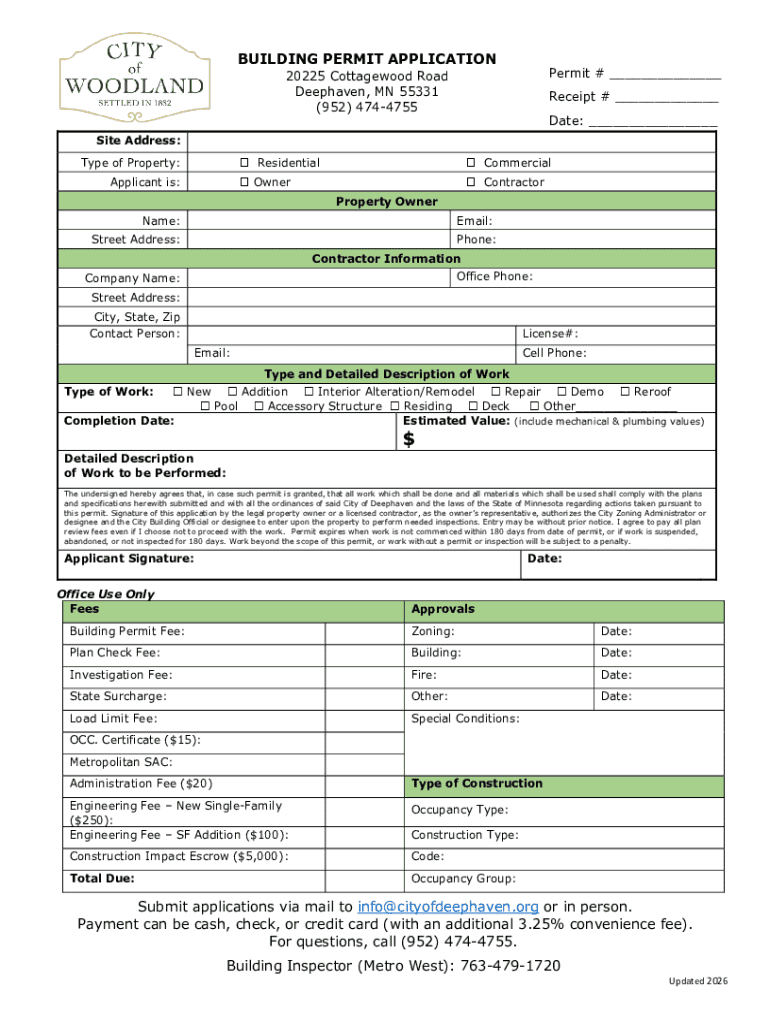 Get the free Building Permit Application - DEEPHAVEN WOODLAND