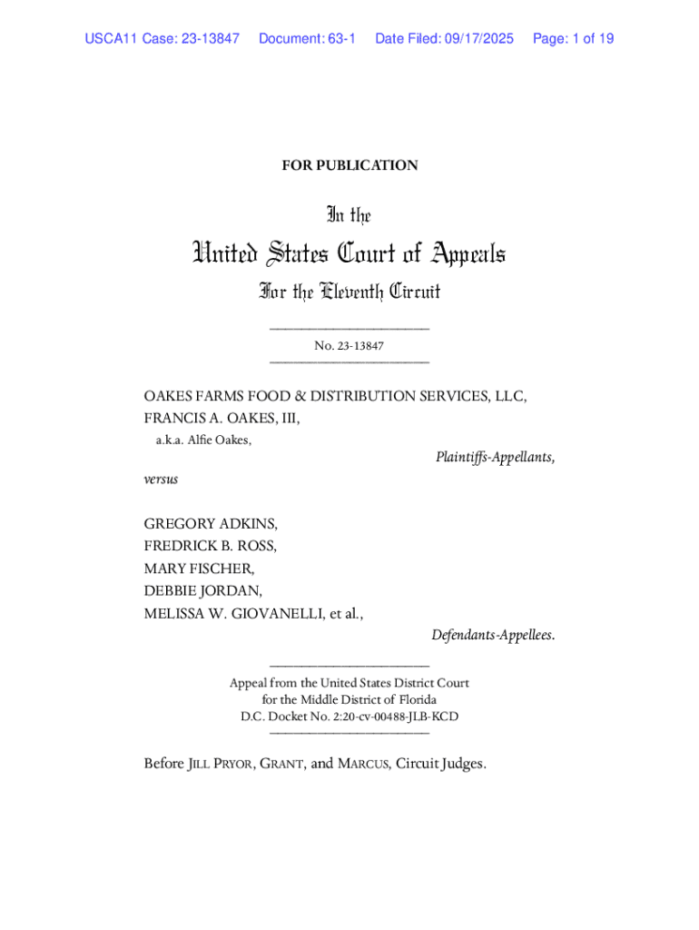 USCA11 Case: 2313847Document: 631Date Filed: 09/17/2025Page: 1 of 19FOR PUBLICATIONIn theUnited States Court of Appeals For the Eleventh Circuit ___ No. 2313847___ OAKES FARMS FOOD & DISTRIBUTION