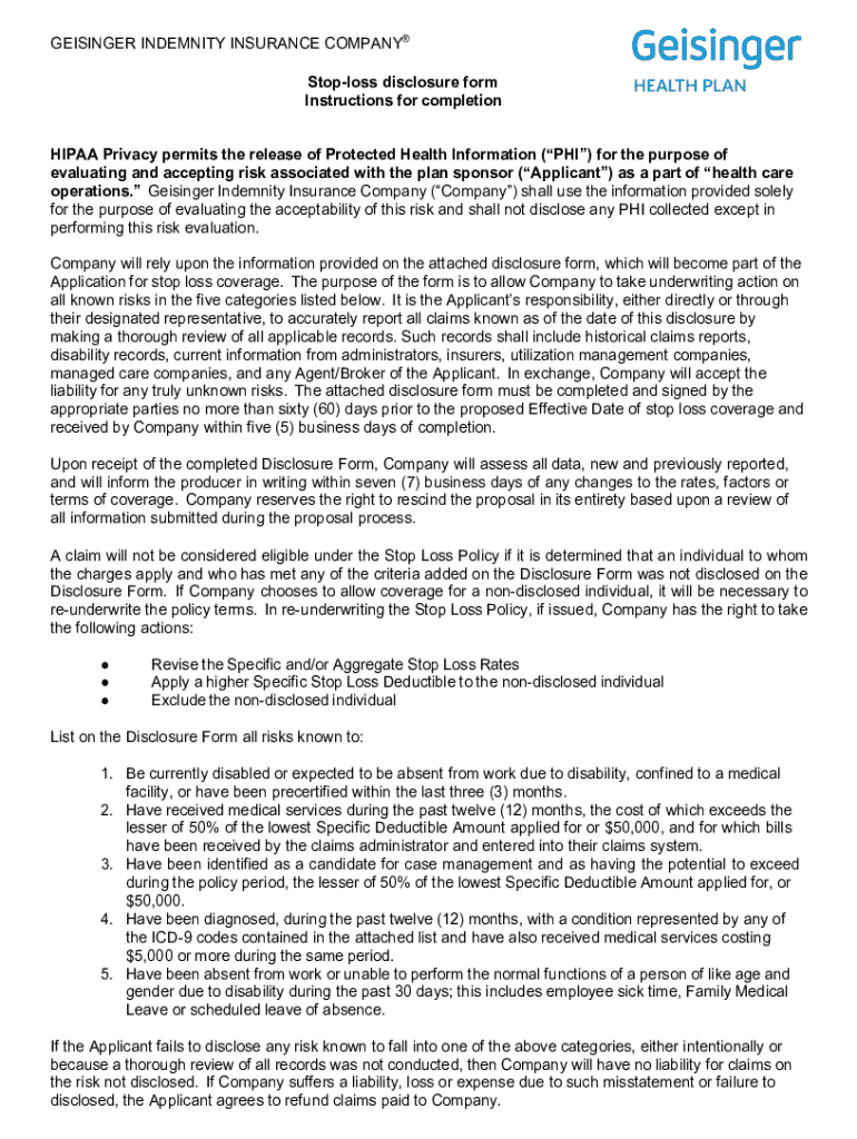 Get the free Stop-loss disclosure form Instructions for completion HIPAA Privacy ...