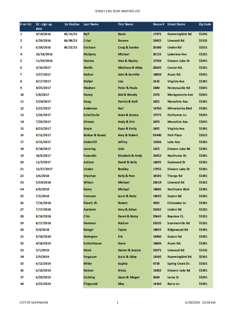 Get the free DEEPHAVEN - MARINA WAIT LIST - STREET END SLIDE.xlsx