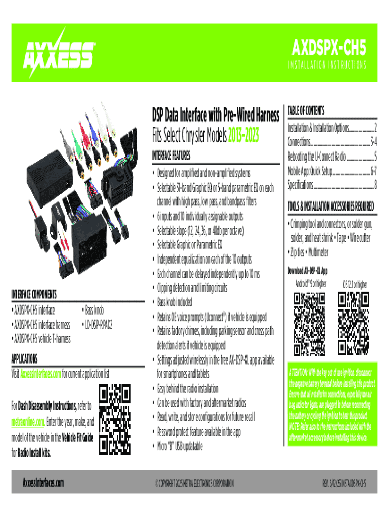 Get the free AXDSPX-CH5. At Metra, 12volt installation and integration is our passion. We strive ...