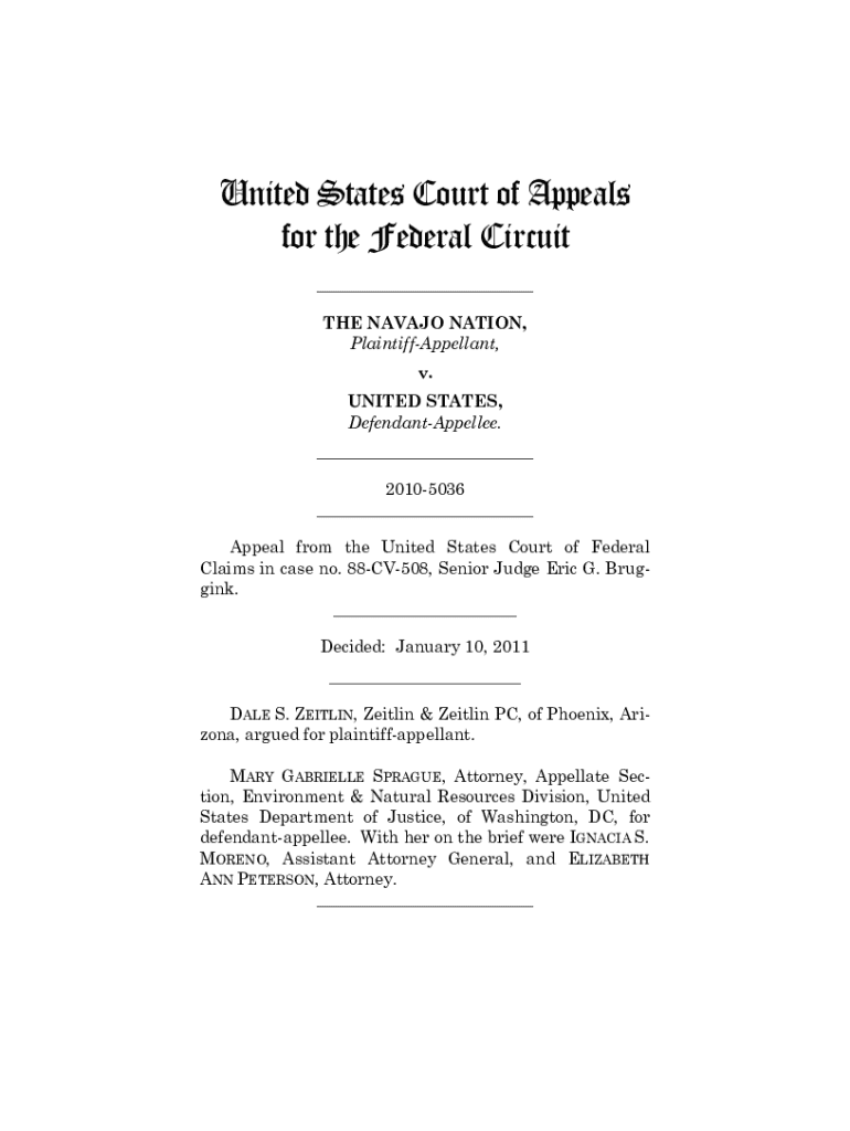 United States Court of Appeals for the Federal Circuit ___ THE NAVAJO NATION, PlaintiffAppellant, v. UNITED STATES, DefendantAppellee. ___ 20105036 ___ Appeal from the United States Court of Federal