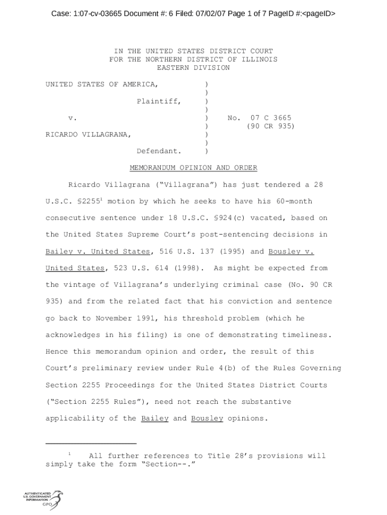Get the free Case: 1:07-cv-03665 Document #: 6 Filed: 07/02/07 Page 1 of 7 PageID #: