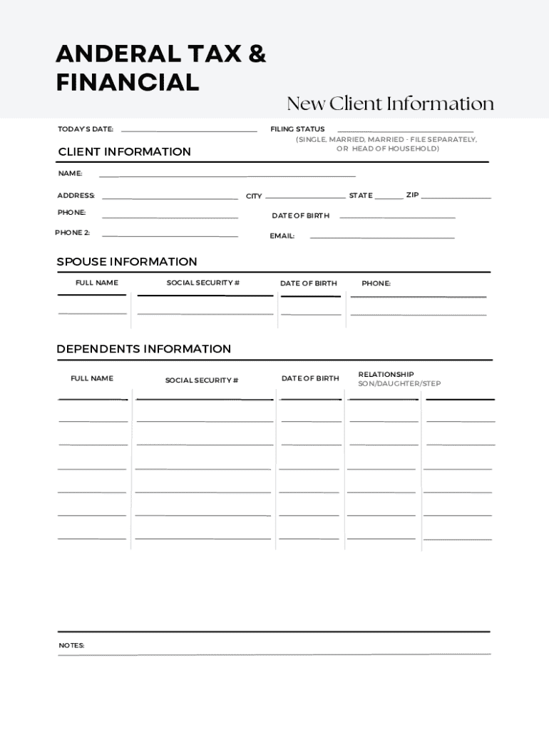 Get the free Anderal Tax New Client Form