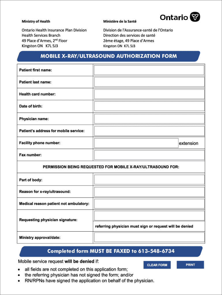 MOBILE XRAY, MOBILE GENERAL AND VASCULAR ULTRASOUND TO ORDER A MOBILE XRAY, MOBILE GENERAL, AND VASCULAR ULTRASOUND YOU NEED TO FOLLOW THESE THREE STEPSSTEP#01:The physician/NP must ll out the Ministry