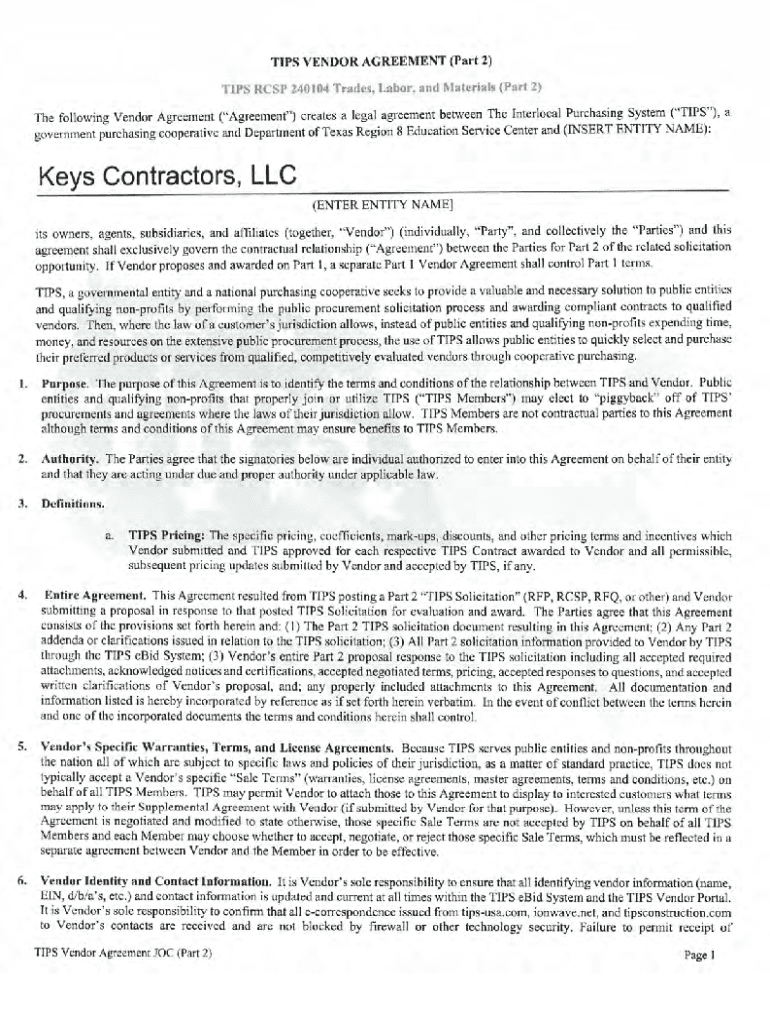 Get the free 240104 Keys Contractors LLC Supplier Response