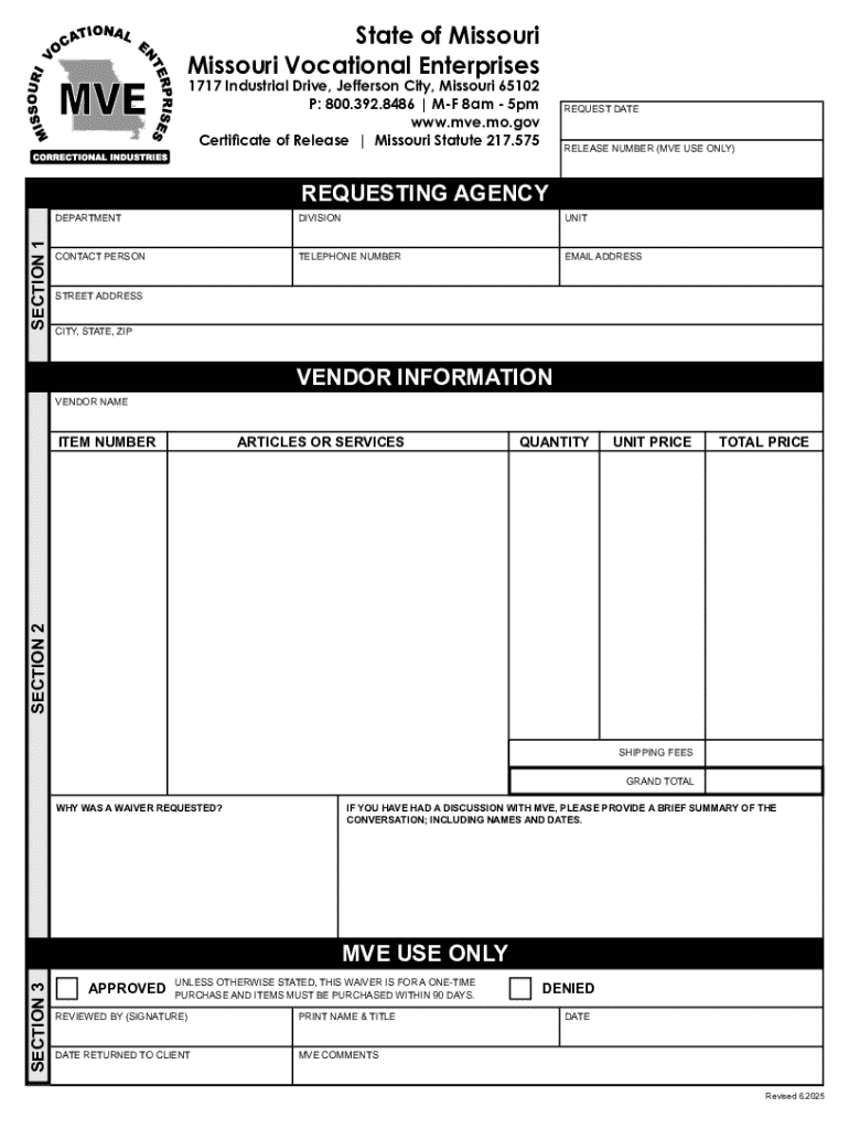 Get the free Disclaimer - MVE: Correctional Industries - MO.gov