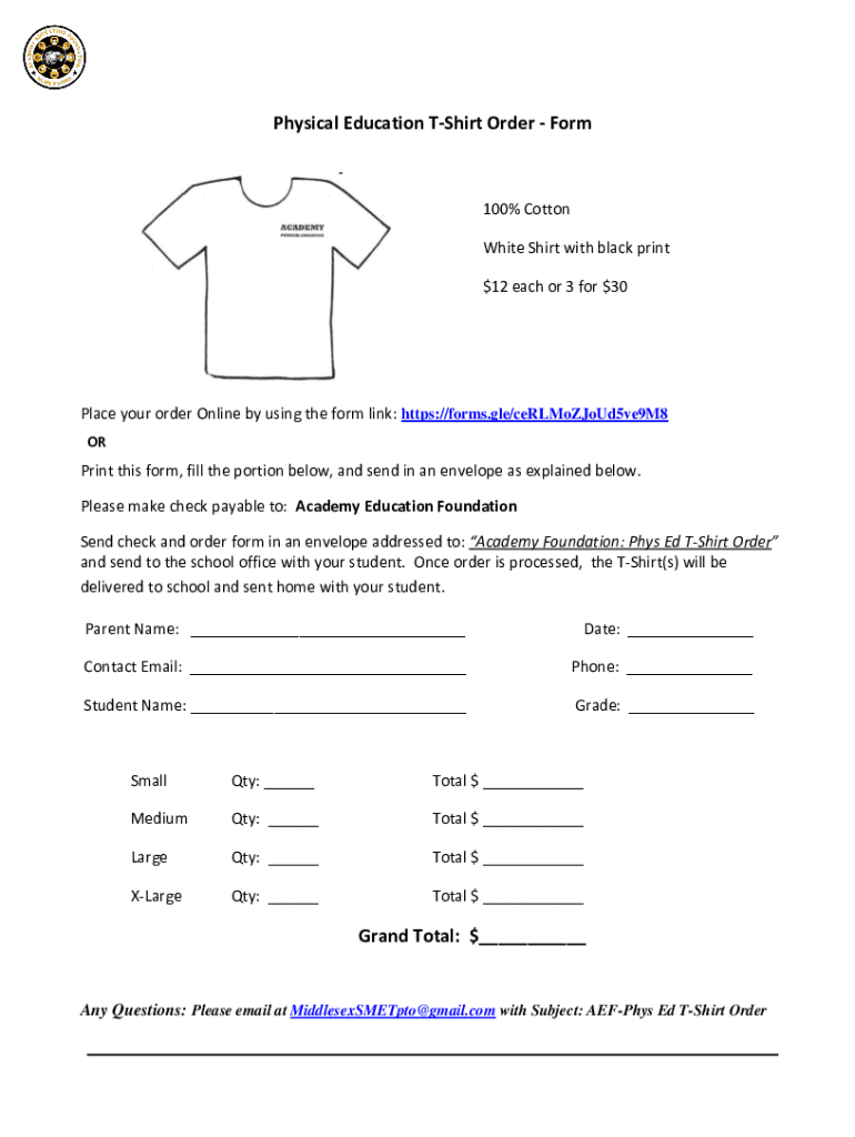 Understanding the physical education t-shirt order form