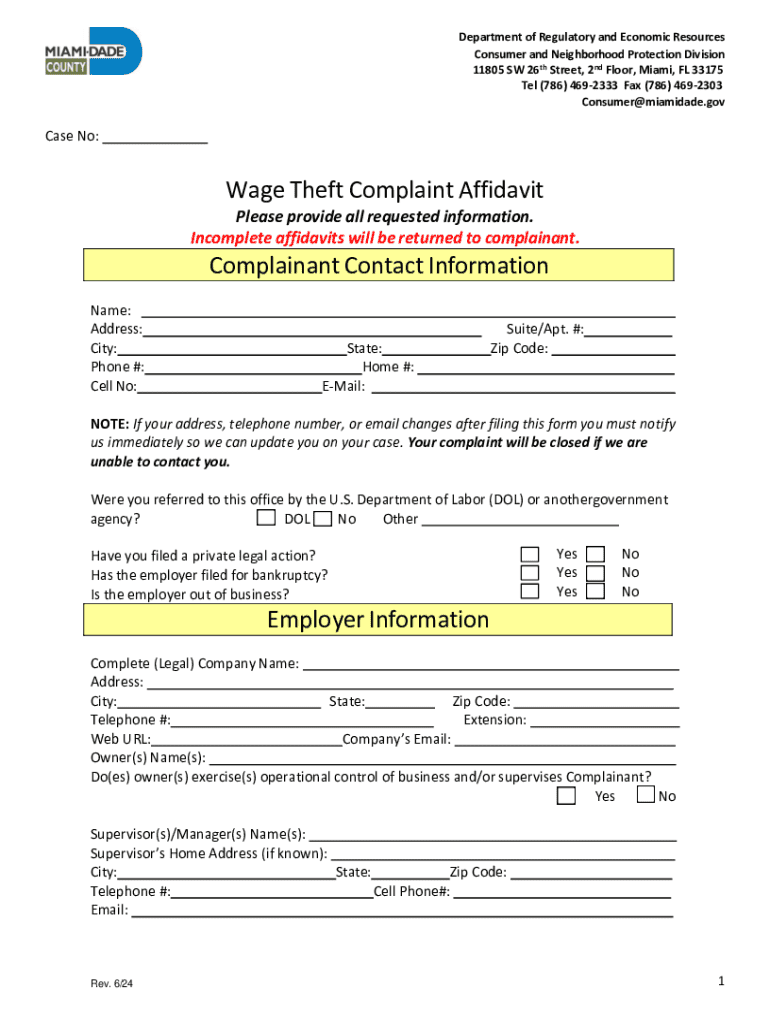 Department of Regulatory and Economic Resources Consumer and Neighborhood Protection Division 11805 SW 26th Street, 2nd Floor, Miami, FL 33175 Tel (786) 4692333 Fax (786) 4692303 Consumer@miamidade.govCase