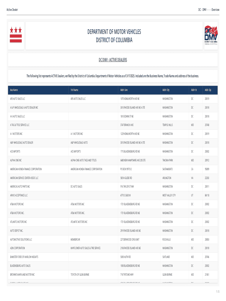 Get the free Online Washington, D.C. - Department of Motor Vehicles ... - dmv dc