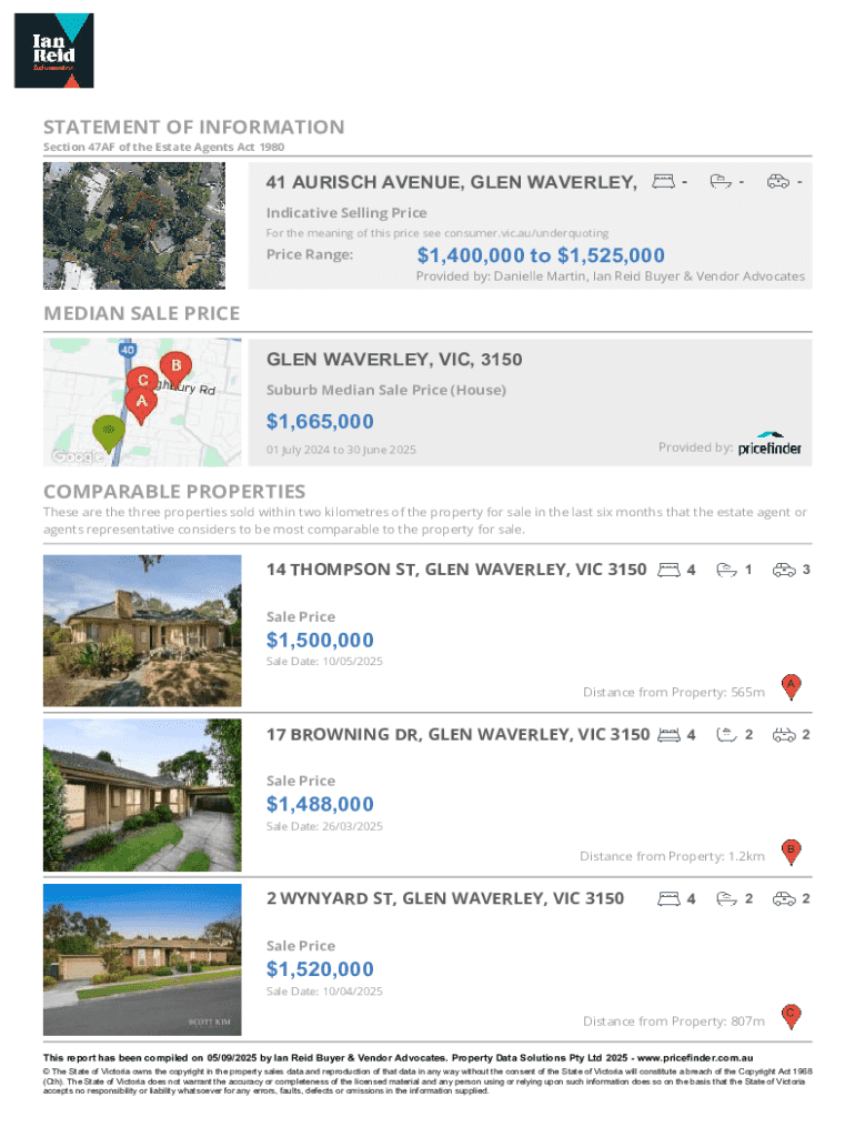 STATEMENT OF INFORMATION Section 47AF of the Estate Agents Act 198041 AURISCH AVENUE, GLEN WAVERLEY, Indicative Selling Price For the meaning of this price see consumer.vic.au/underquoting$1,400,000