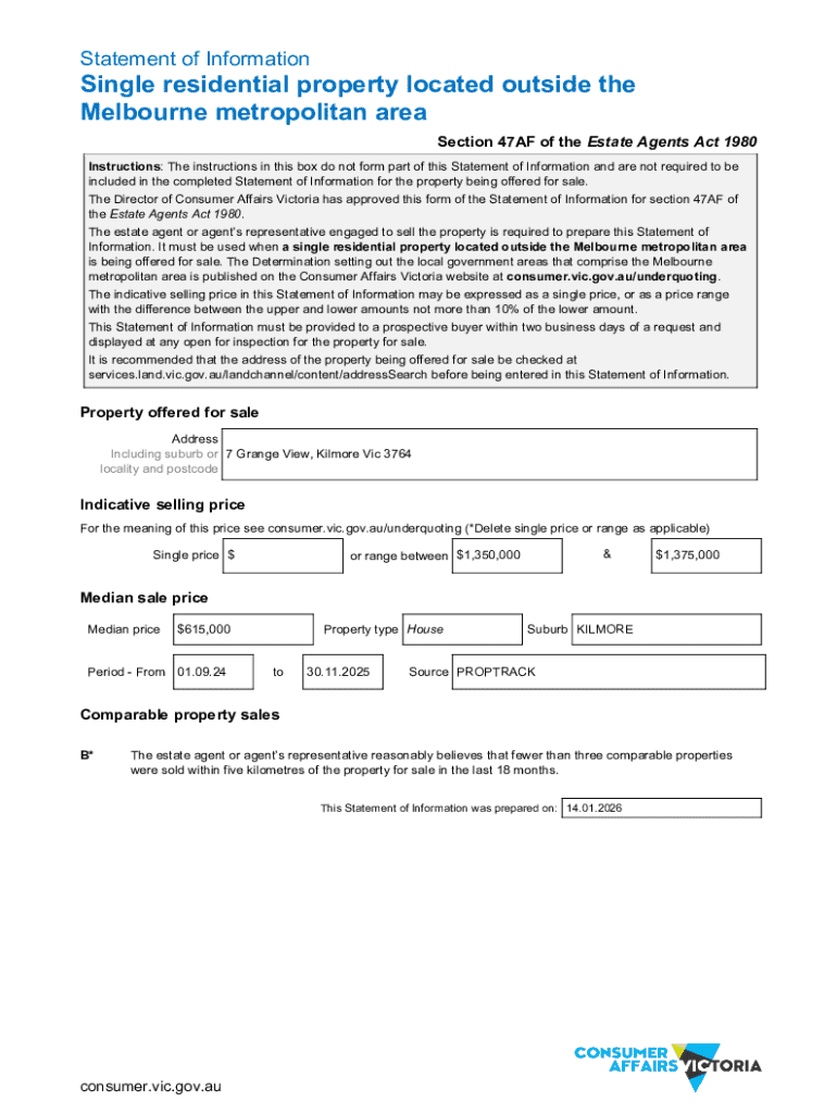 Get the free Including suburb or 7 Grange View, Kilmore Vic 3764