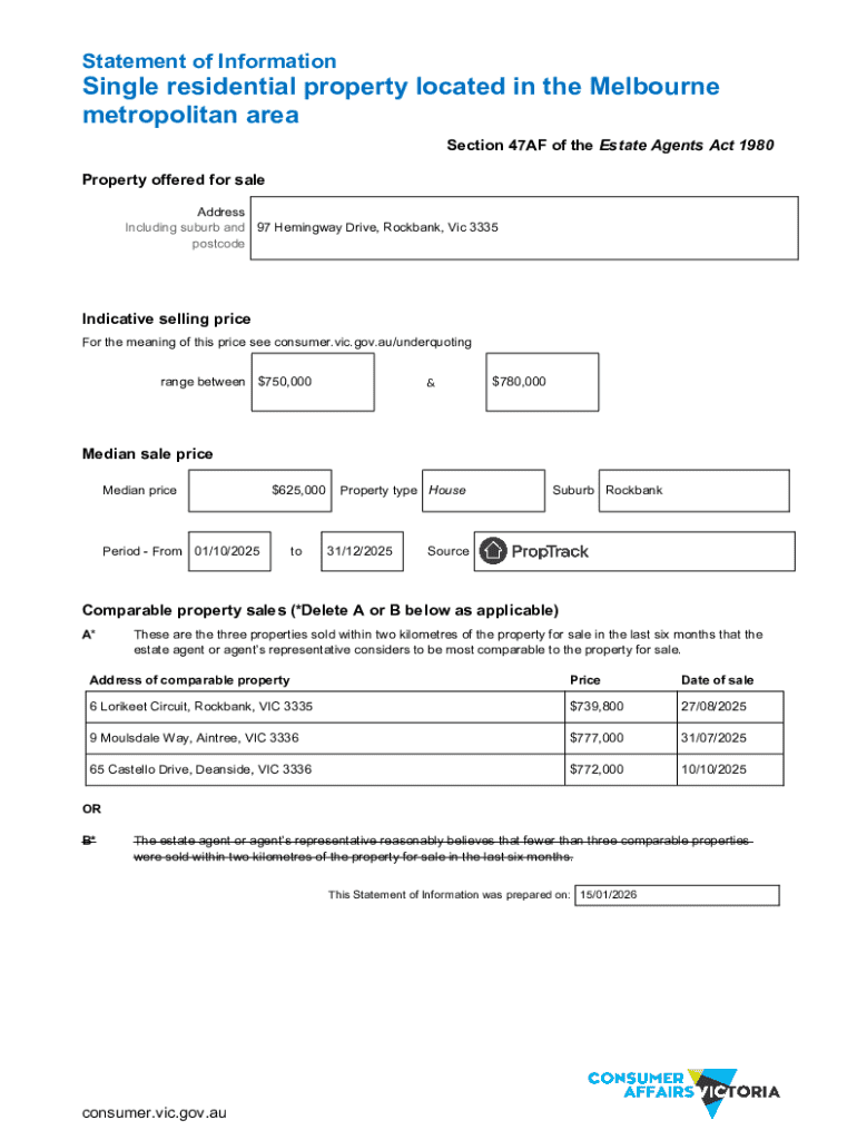 Get the free Including suburb and 97 Hemingway Drive, Rockbank, Vic 3335