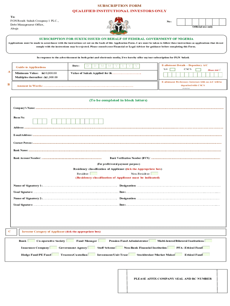 What is subscription form qualified institutional?