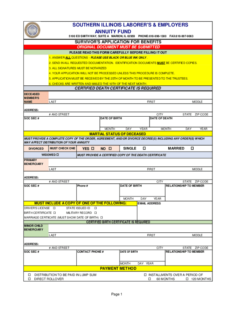The Silehw Annuity Fund Beneficiary Form contains several key components that are crucial for accurate completion. It gathers essential information that ensures clarity in handling your annuity benefits after your death.