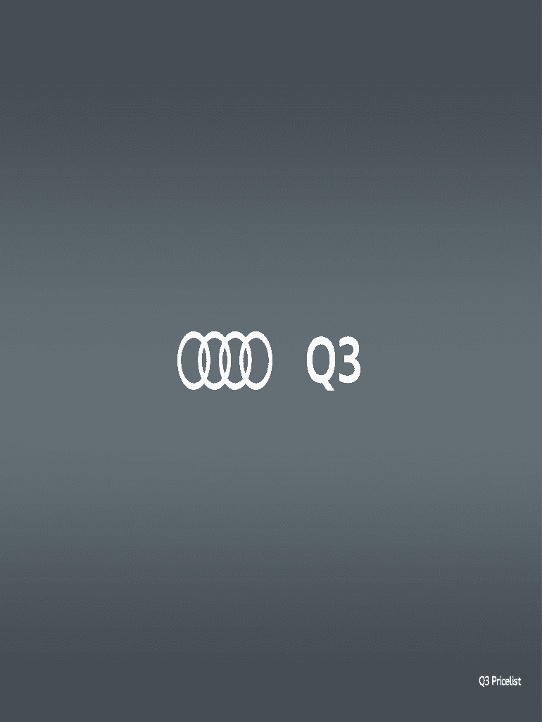 Q3Q3 PricelistThe Audi Q3. Few cars combine the qualities of an SUV and a city car in quite the same way as the Audi Q3. Within the flowing design, with strong lines and a wraparound tailgate, youll