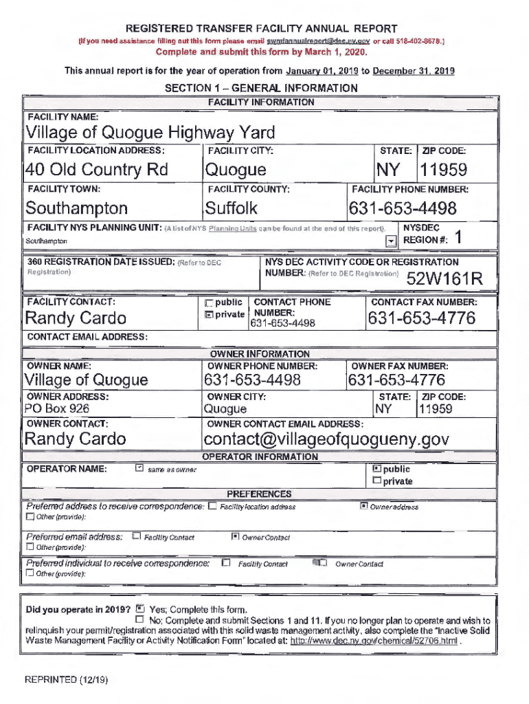 Get the free NY Permitted Transfer Facility Annual Report 2020-2026