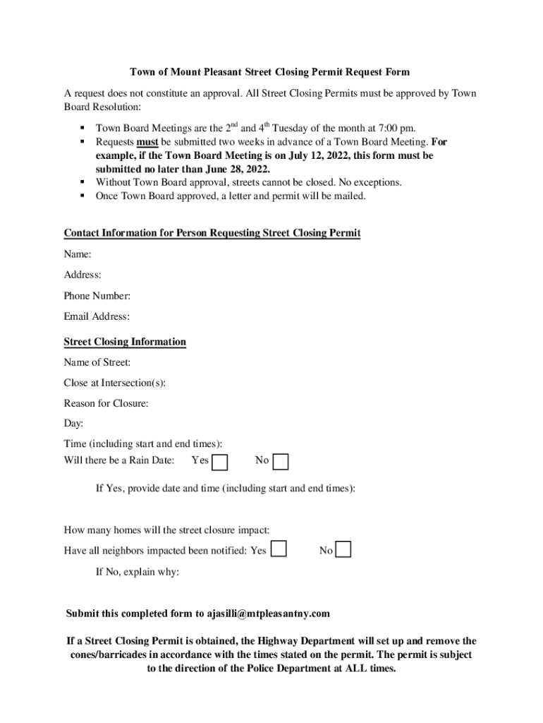 Get the free Town of Mount Pleasant Street Closing Permit Request Form