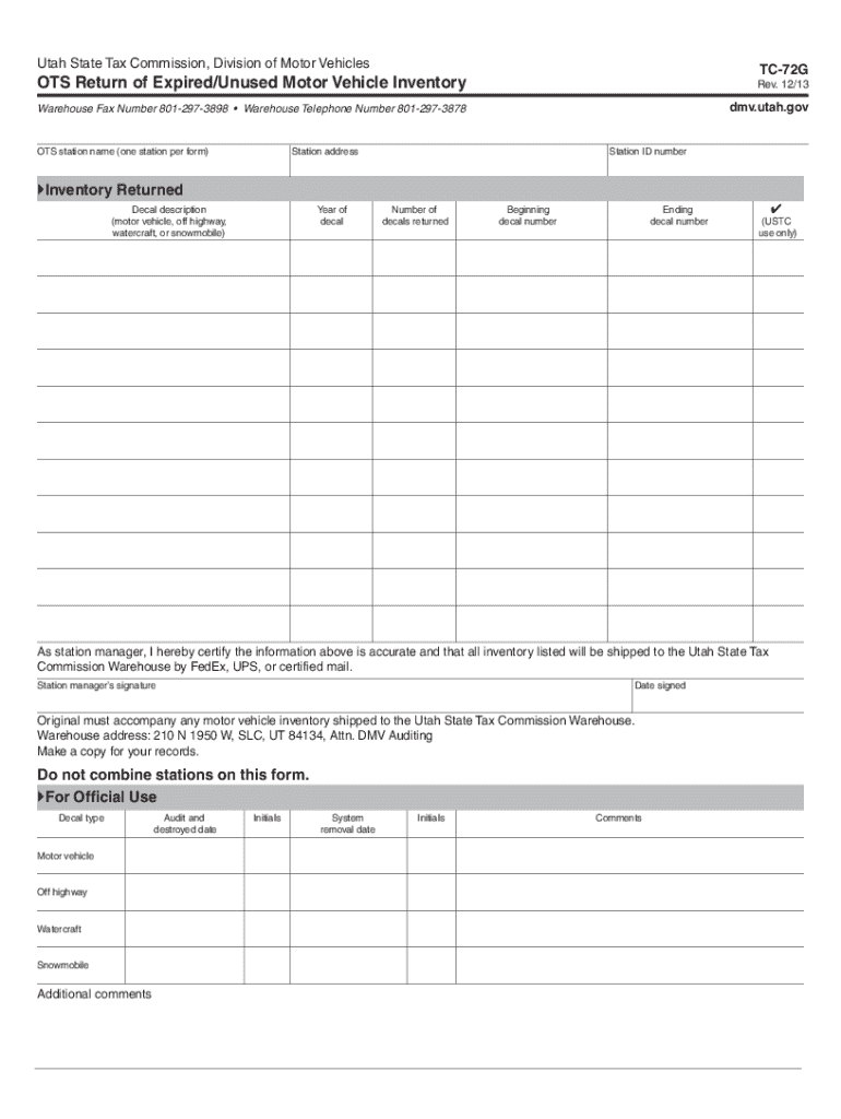 Get the free TC-72G OTS Return of Expired/Unused Motor Vehicle Inventory. Forms & Publications