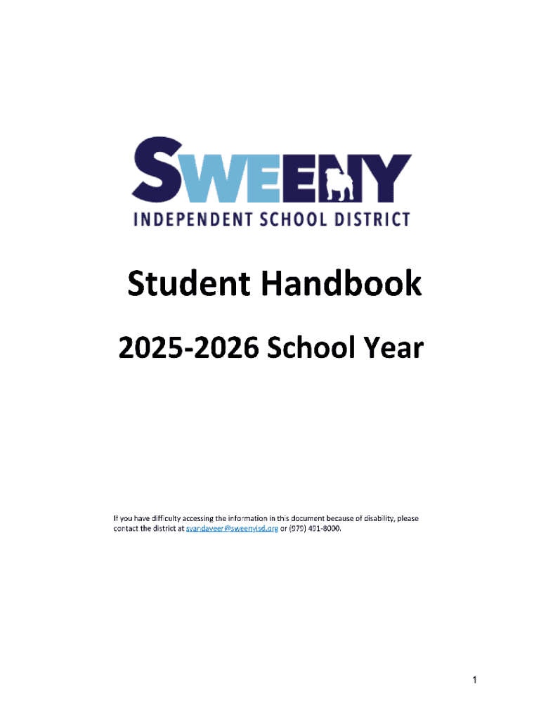 1Sweeny ISD Student Handbook 202526 School Year If you have difficulty accessing the information in this document because of disability, please contact the district Director of Special Programs, Sandra