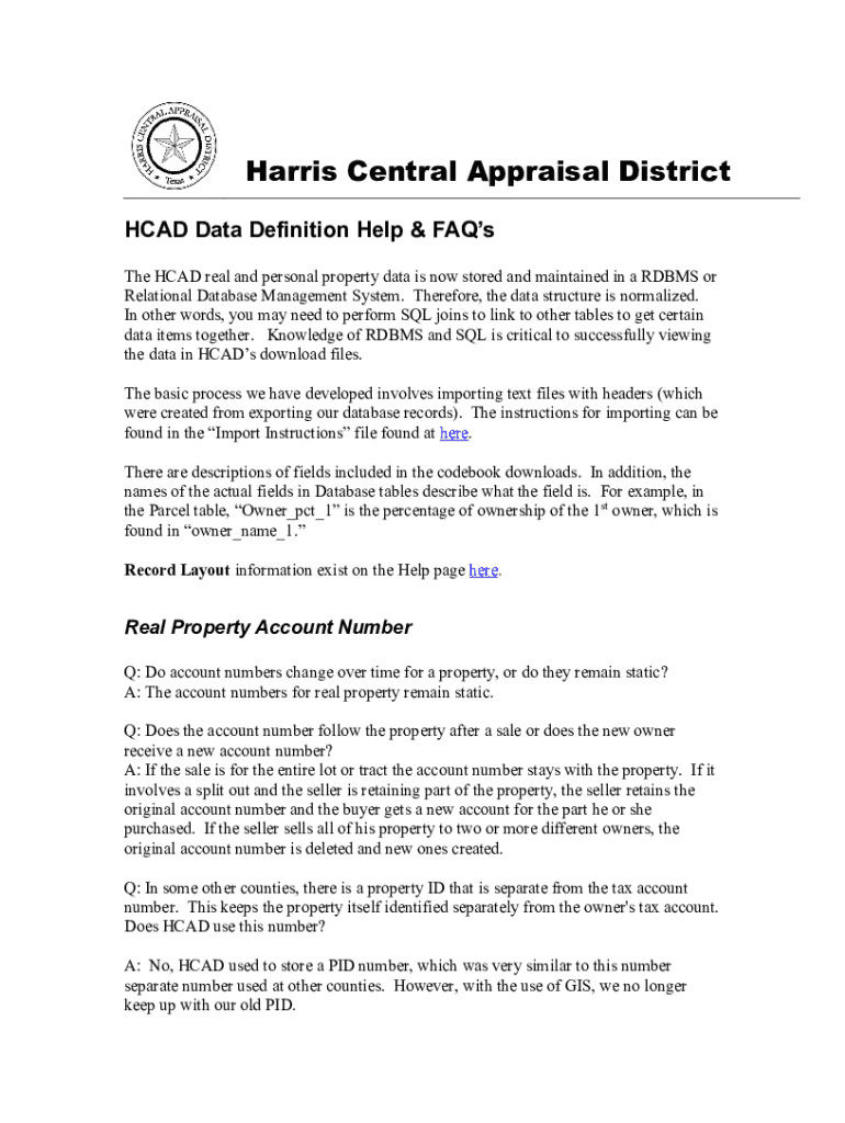 HCAD data, sourced from the Harris County Appraisal District, encompasses vital information related to properties in Harris County, Texas. This data is fundamental for individuals, real estate professionals, and organizations as it aids in making informed decisions about property purchases, sales, and valuations. Understanding this data is pivotal as it directly influences property taxes, assessments, and compliance with local zoning regulations.