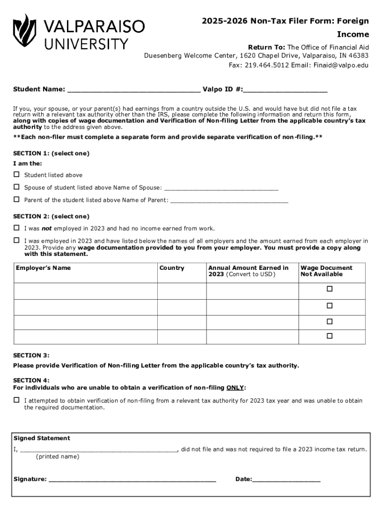 The 2526 Parent Non-Tax Filer Form is a crucial document for families navigating the financial aid process, particularly when applying for federal student aid through the Free Application for Federal Student Aid (FAFSA). This form serves as evidence that a parent has not filed a federal tax return for the relevant tax year. Its primary purpose is to ensure that the financial aid offices can fairly assess the financial situation of students from non-filing households.