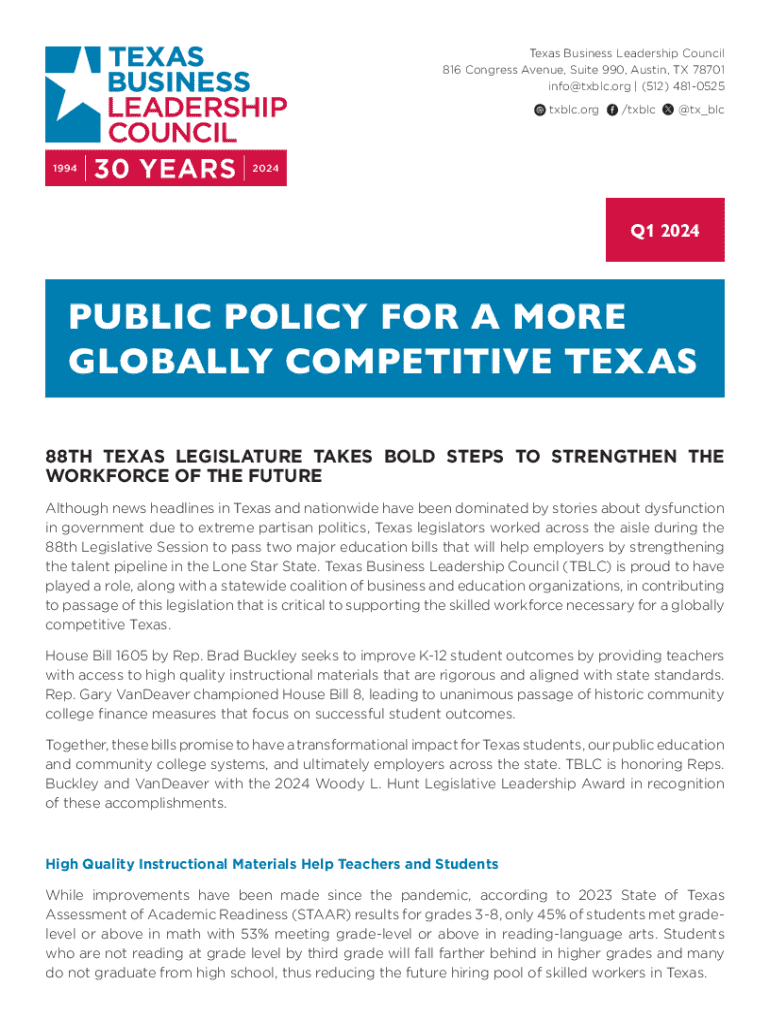 Get the free PUBLIC POLICY FOR A MORE GLOBALLY COMPETITIVE TEXAS