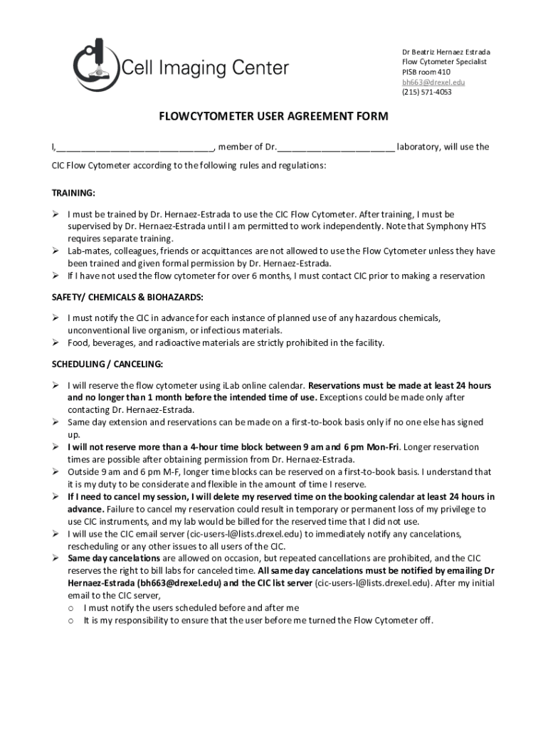 Comprehensive Guide to the Flow Cytometer User Agreement Form