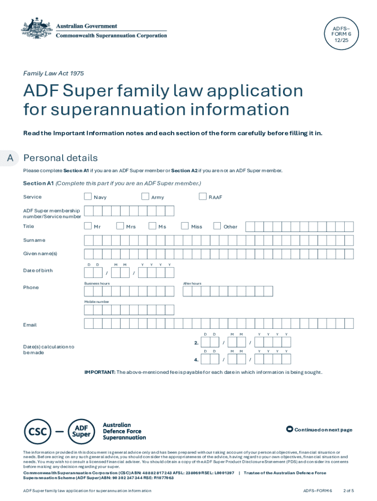 The Australian Defence Force (ADF) Superannuation system plays a pivotal role in ensuring the financial security of ADF personnel and their families. Central to navigating this system, especially during separation or divorce, is the ADF Super Family Law Form. This form facilitates the splitting of superannuation entitlements which is essential for individuals undergoing family law proceedings.