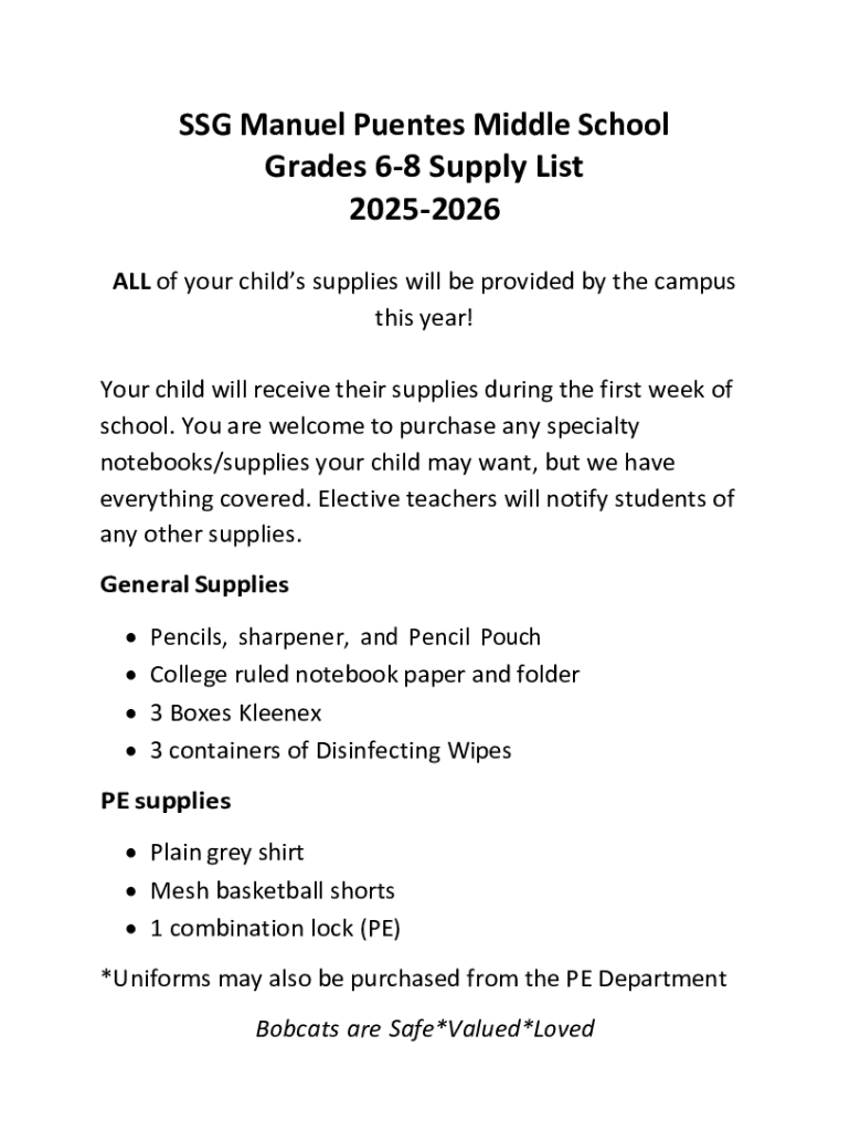 Get the free School Supplies for SSG Manuel R Puentes Middle School